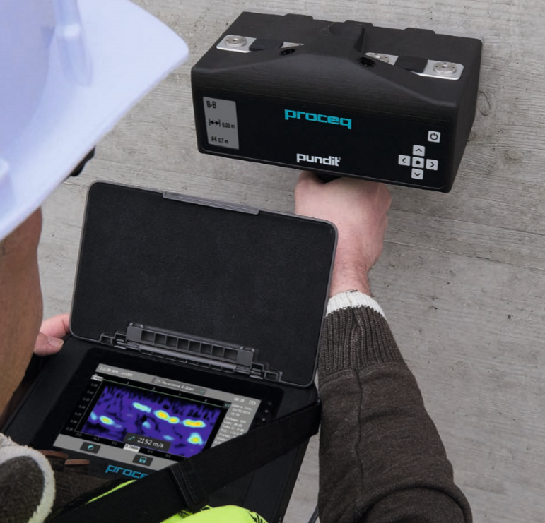 緊湊,輕巧且易于使用的超聲波斷層掃描儀,僅需單面接觸混凝土就可以清晰成像。