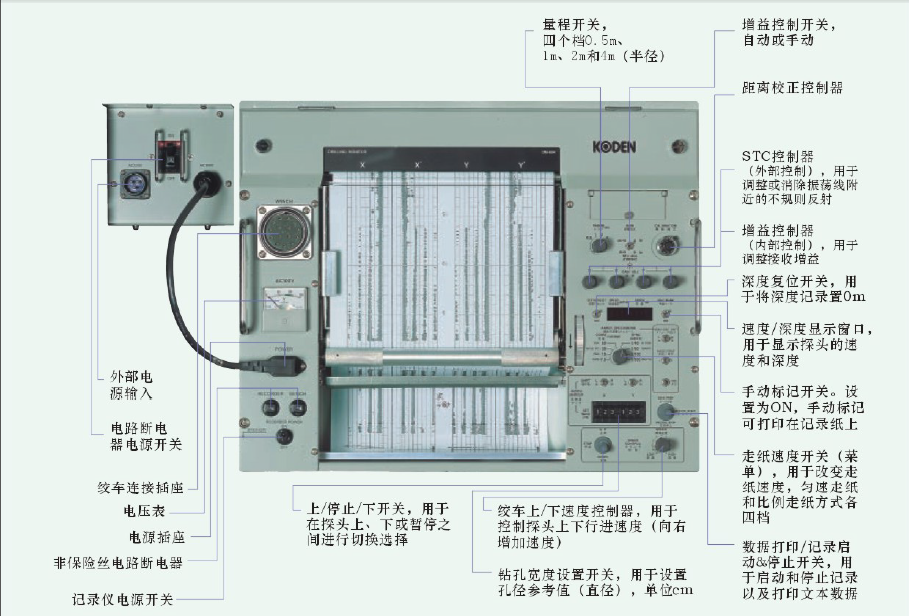 l 量程、深度、鉆孔號(hào)、日期、時(shí)間等均能在記錄紙上打印出來
