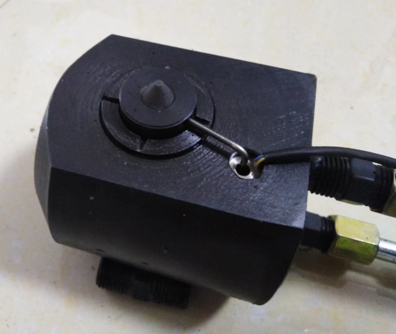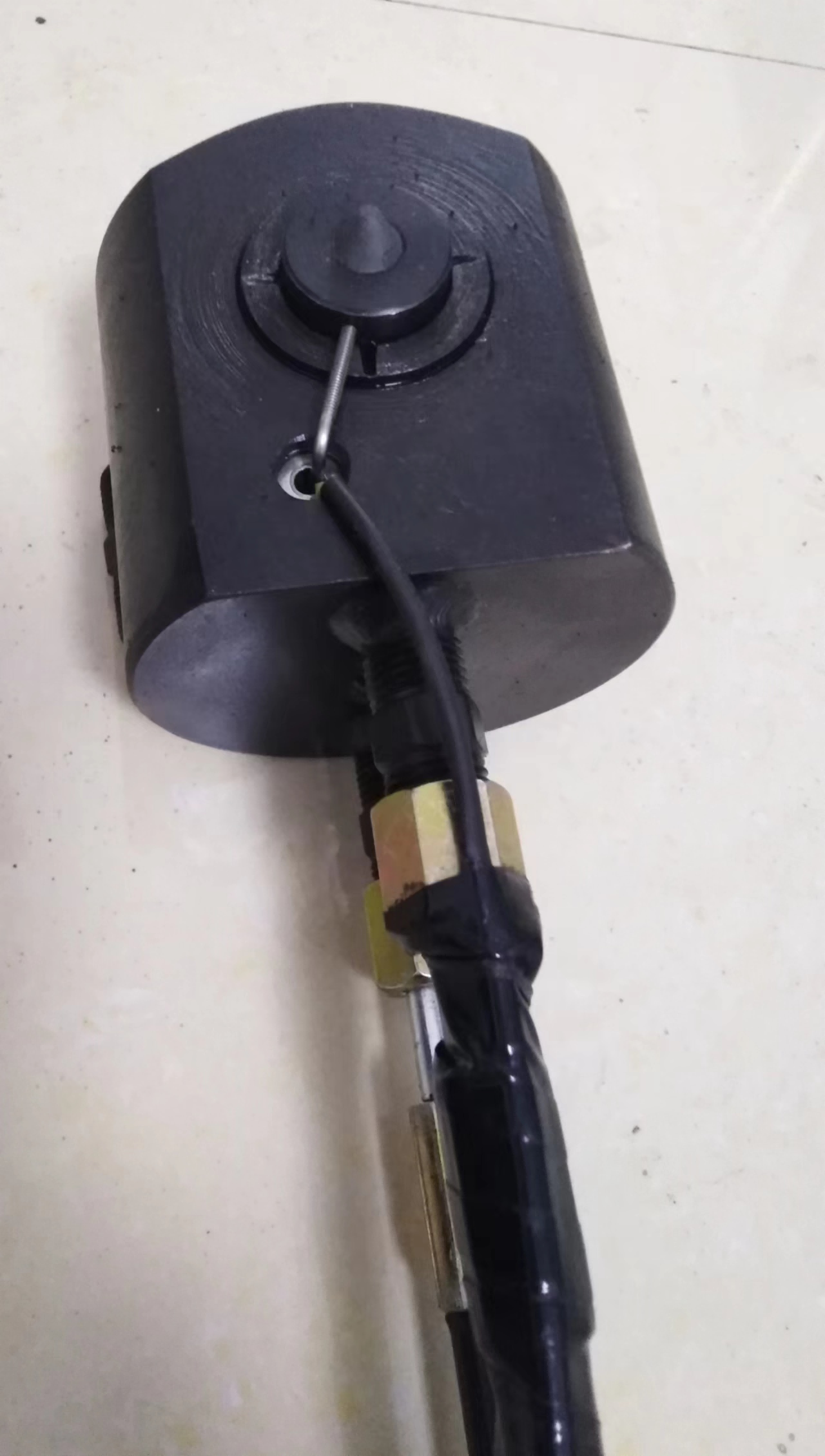 把探頭和高壓管連接,高壓管連接手動(dòng)泵,手動(dòng)泵接壓力傳感器,傳感器和采集儀連接,再把探頭連接到安裝桿。