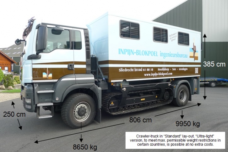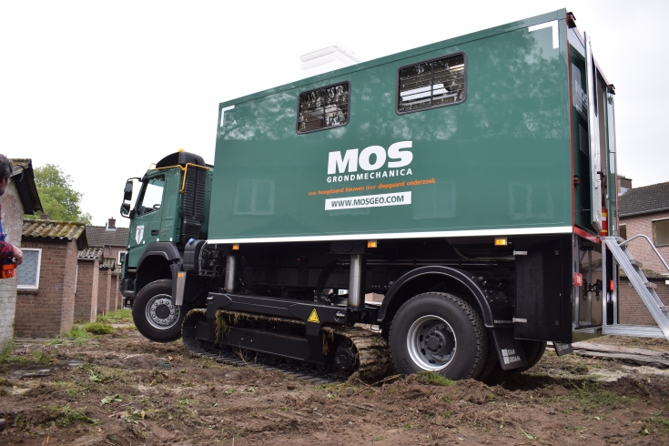 CPT履帶式卡車是一種基于卡車底盤的CPT貫入儀,具有履帶式起落架。履帶式卡車已被設(shè)計(jì)為基于靜力觸探測試(CPT)技術(shù)以有效的方式完成土力學(xué)研究。借助于安裝在CPT履帶式卡車重心的貫入系統(tǒng),將電測式或機(jī)械式探頭(稱為錐)貫入地面,記錄土壤的機(jī)械阻力和摩擦力。CPT履帶式卡車本身具有相對(duì)較高的自重,并用作配重以提供所需的貫入力。