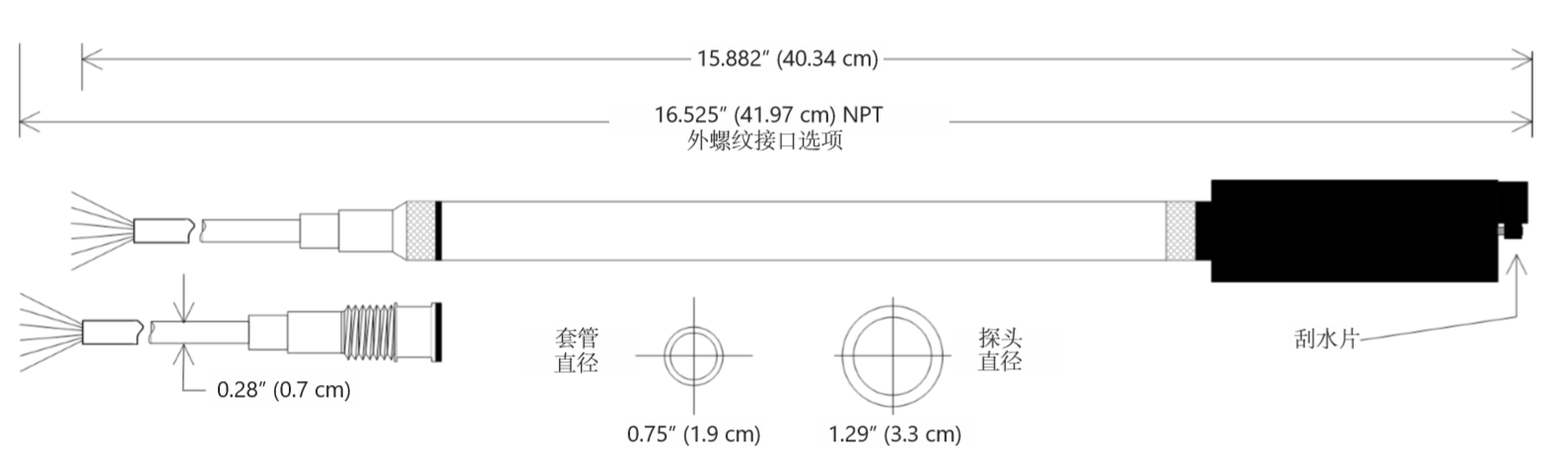 40.34cm w/電纜線束 41.97cm w/NPT適配器