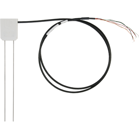 熱敏電阻測量溫度,其熱觸點靠近環(huán)氧樹脂的表面與探頭相連。水平安裝傳感器可保證在相同深度精確的測量含水量和土壤溫度。而其它方向的安裝所進行的溫度測量僅代表環(huán)氧樹脂與探針連接位置附近區(qū)域的溫度。