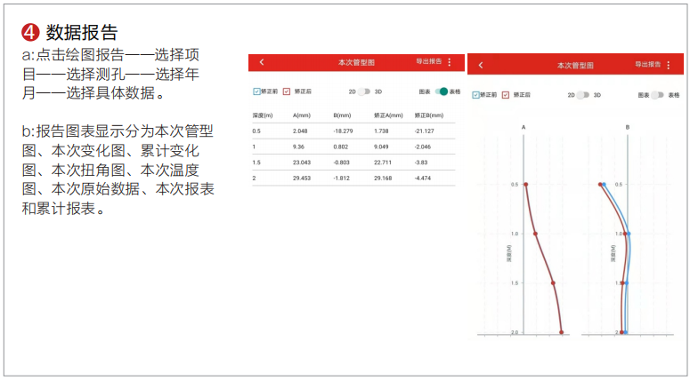在測(cè)斜儀觀測(cè)時(shí)為了消除和減少儀器裝備的誤差,應(yīng)在位移的正方向及探頭調(diào)轉(zhuǎn)180度的方向(A+/A-方向)各測(cè)一次數(shù),取正反兩方向的代;數(shù)平均值作為觀測(cè)值。
