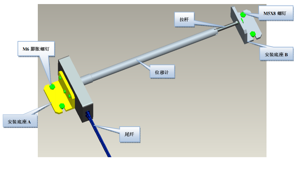 d)用 1 個(gè) M5 螺釘將傳感器的拉桿與安裝底座 B 固定。