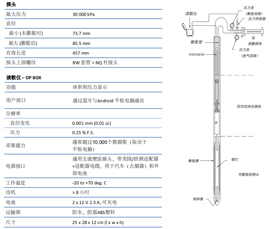 PROBEXe是一種多功能設(shè)備,具有巖石彈模儀和柔性膨脹計(jì)的特性。