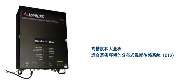 DiTemp Harsh +是用于在惡劣環(huán)境(從沙漠到北極)中測量幾公里范圍內(nèi)分布溫度的獨特工具。 它是用于識別和定位潛在問題的強大診斷工具。 它允許通過單根光纖并僅一次測量來監(jiān)測數(shù)千個位置的局部溫度。 其固有的高穩(wěn)定性和自參考操作原理允許對大型結(jié)構(gòu)進(jìn)行在線或離線長期監(jiān)測。