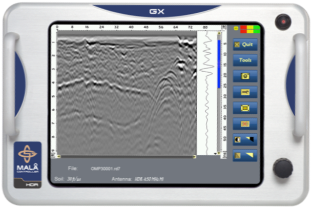 MALA GX 控制器是由MALA品牌的所有權(quán)公司瑞典 GGEO公司設(shè)計(jì)和研制, 專門為GX系統(tǒng)量身打造的一款控制器,其設(shè)置和操作非常簡(jiǎn)單,只有一個(gè)旋轉(zhuǎn)按鈕(可戴手套操作)。自帶了預(yù)處理的功能, 可以在測(cè)試現(xiàn)場(chǎng)進(jìn)行圖像處理和判斷,為工程應(yīng)用增添了方便 ;選用的是全世界最穩(wěn)定的美國(guó) Linux OS操作系統(tǒng),基本不會(huì)死機(jī),保證了野外采集數(shù)據(jù)的安全性;還有其采用了合金外殼,適用于野外各種復(fù)雜和嚴(yán)酷的環(huán)境 ,軍工級(jí)防護(hù)。