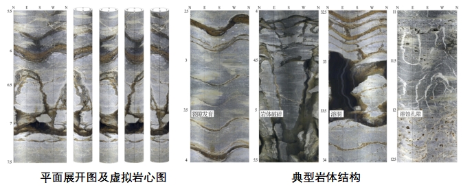9. 分析軟件可將全景影像轉(zhuǎn)換為全景圖像,全景圖像通常包括兩種形式:鉆孔壁平面展開圖、虛擬巖芯圖;通過全景圖像中的方位和深度信息,可對圖像中的結(jié)構(gòu)面參數(shù)進(jìn)行解算,主要包括結(jié)構(gòu)面產(chǎn)狀、隙寬、間距等,輸出結(jié)果內(nèi)容豐富、直觀準(zhǔn)確。