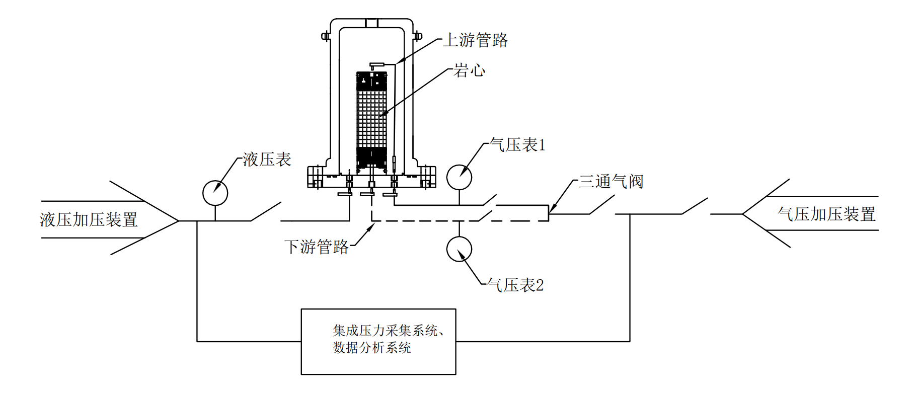 該儀器主要針對低滲巖心進行滲透率的測量,經(jīng)過試驗,最低滲透率可達10nD(10-8D),且相對一般儀器有耗時短、精度高等優(yōu)點,且主體集成于控制箱內(nèi),更加輕便。為方便計算滲透率,將上下游空腔體積設(shè)為一致化簡了計算公式。