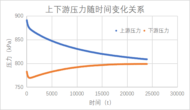 因致密巖心滲透率較低,將上下游空腔體積設(shè)為4.8008ml,當氣體分別由上下游氣室向巖樣中滲透時,可以使傳感器較為敏感的監(jiān)測到氣體壓力變化,從而達到測量較低滲透率的目的。