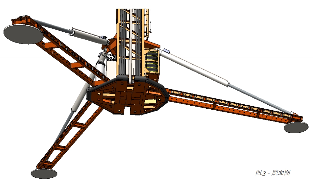 三個(gè)折疊腿可以在設(shè)備運(yùn)輸?shù)胶5椎倪^程中展開,并在不平坦的海底表面上自動(dòng)調(diào)平設(shè)備。