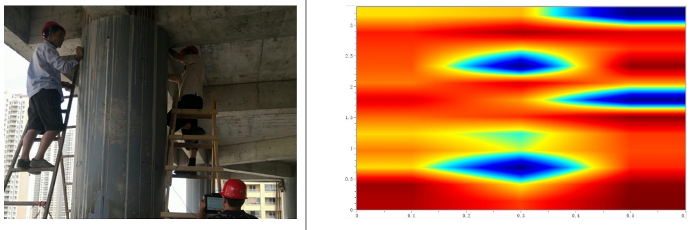 該方法以沖擊彈性波作為媒介,以波速和信號幅值作為計(jì)算依據(jù),通過交叉測線對被檢對象進(jìn)行全方位掃描,通過對采集數(shù)據(jù)的反演、重建,得到真實(shí)反映結(jié)構(gòu)內(nèi)部情況分布圖像,達(dá)到檢測結(jié)構(gòu)物內(nèi)部質(zhì)量的目的。