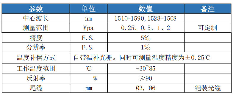 表 1 光纖光柵滲壓計主要性能參數(shù)