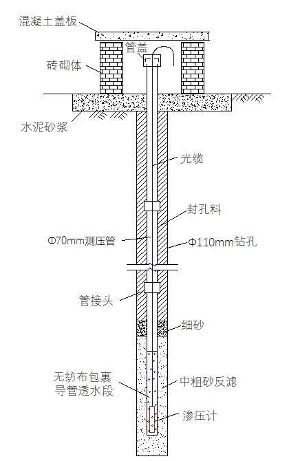 1)測壓管中埋設安裝,先鉆孔后埋設測壓管,再將滲壓計安裝測壓管內。