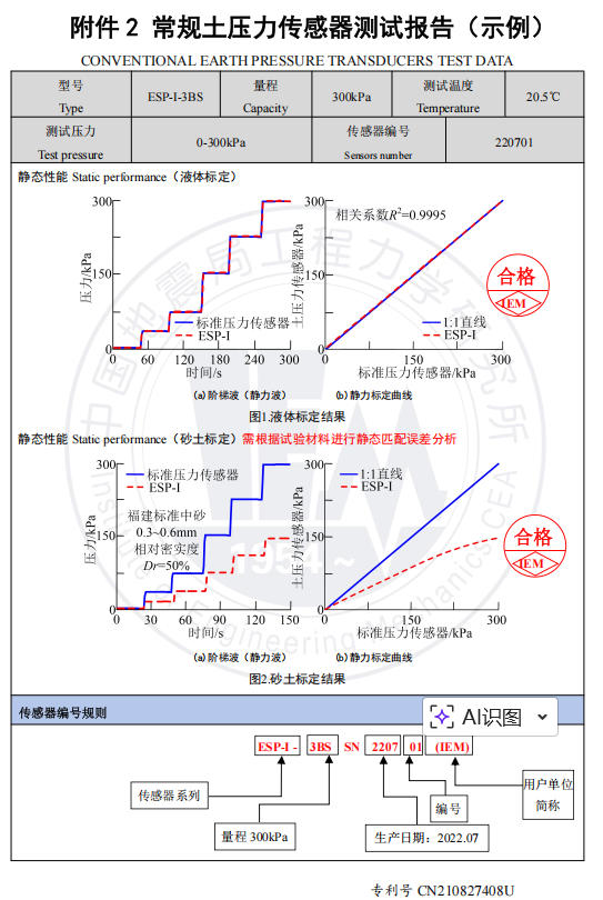 為滿足多場耦合和土體環(huán)境等原位場地中高可靠性、高穩(wěn)定性的土壓力測試需求,及常規(guī)室內物理模型環(huán)境下需求,常對土壓力傳感器的微型化設計提出極為嚴苛的要求,以及在減小流場擾動范圍、土拱效應、應力集中現(xiàn)象,獲取較為準確的土壓力變化規(guī)律。ESP-I 型常規(guī)土壓力傳感器正是為適應上述工況要求而設計,可較大程度減小傳感器測量值與真實值差異(靜態(tài)匹配誤差),使得傳感器靜態(tài)匹配誤差保持一個較為穩(wěn)定值,該型號傳感器采用國內高性能電阻應變式力敏元件,并利用國際先進的微型化制作與封裝技術,使其有效尺寸小、線徑小、結構緊湊、堅固耐用、具有較為良好的靜態(tài)響應和低頻動態(tài)響應性能。